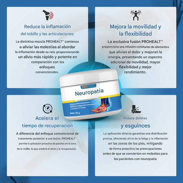 Experimenta un alivio rápido y duradero del dolor neuropático. La crema penetra profundamente para calmar el dolor y mejorar tu calidad de vida, permitiéndote disfrutar de tus actividades diarias sin molestias.